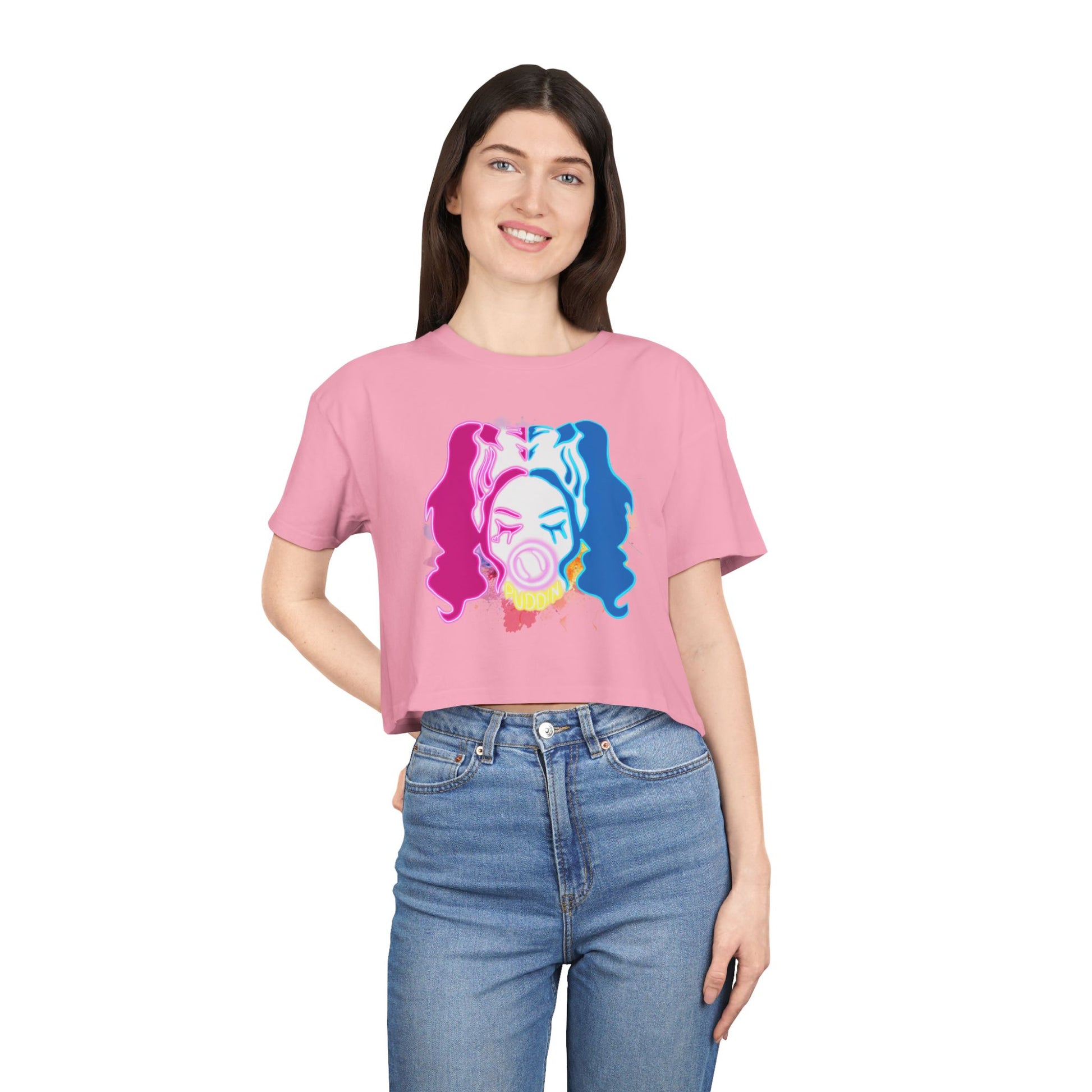 A short, boxy crop tee that brings the bold, playful energy of Harley Quinn to casual wardrobes. The relaxed, dropped-shoulder silhouette drapes effortlessly over high-waist jeans or layered under an open jacket. Soft combed cotton (with select color blends) and medium-weight fabric give it breathable structure without feeling stiff. Wear it to skatepark hangouts, music nights, or days when you want an easy statement piece that still feels lived-in and comfortable.
