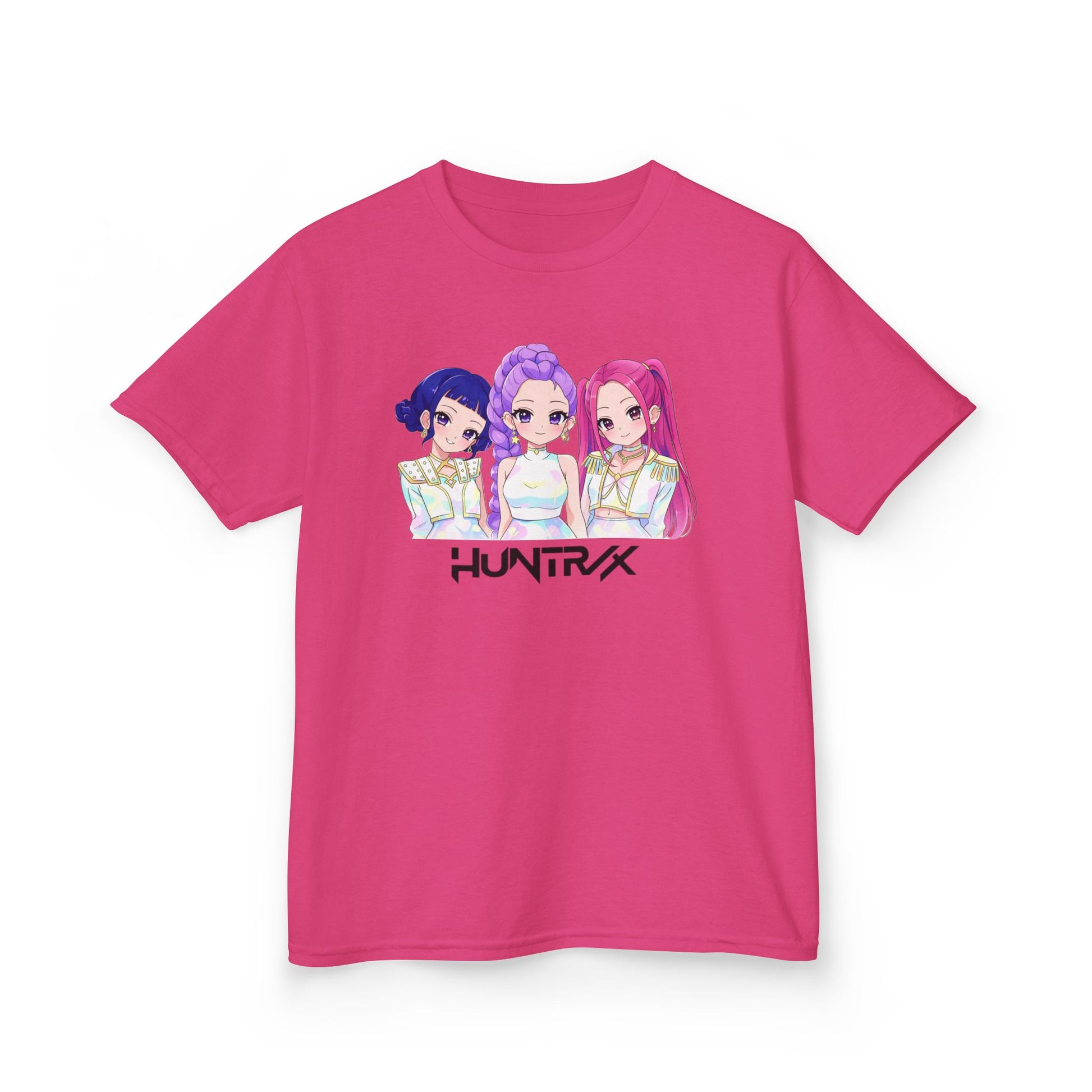 A Kid's Tee feauring Chibi Huntrix Artwork by Kreations Art. Enjoy this cute fan art of the popular Kpop Demon Hunter group. Perfect gift for every kid that is a fan of the movie. Comes in multiple colors to fit the taste and style of any kid.